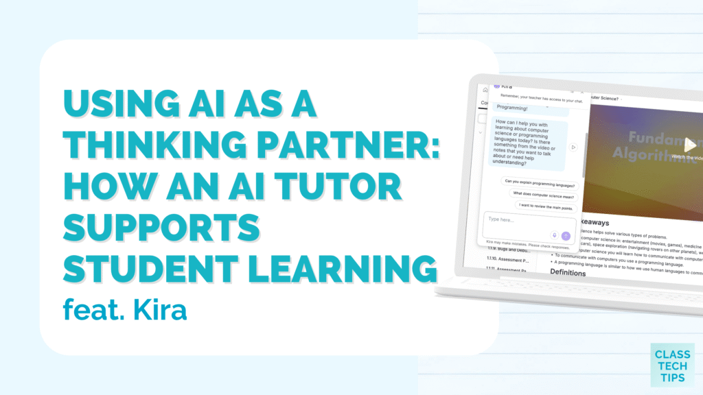 In today’s post, I’ll share what it looks like to use Kira’s AI Tutor from both a student and teacher perspective. We’ll look how this context-aware tool can assist students through work across any subject area, creating a personalized resource for all of the students in your classroom.