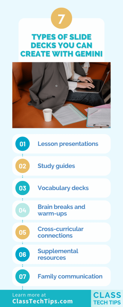 Today on the blog, I’m going to take you step-by-step through one of my favorite ways to get a head start making a fresh slide deck. We’ll take a look at how to create slides with Gemini, one of my favorite strategies to share with educators.